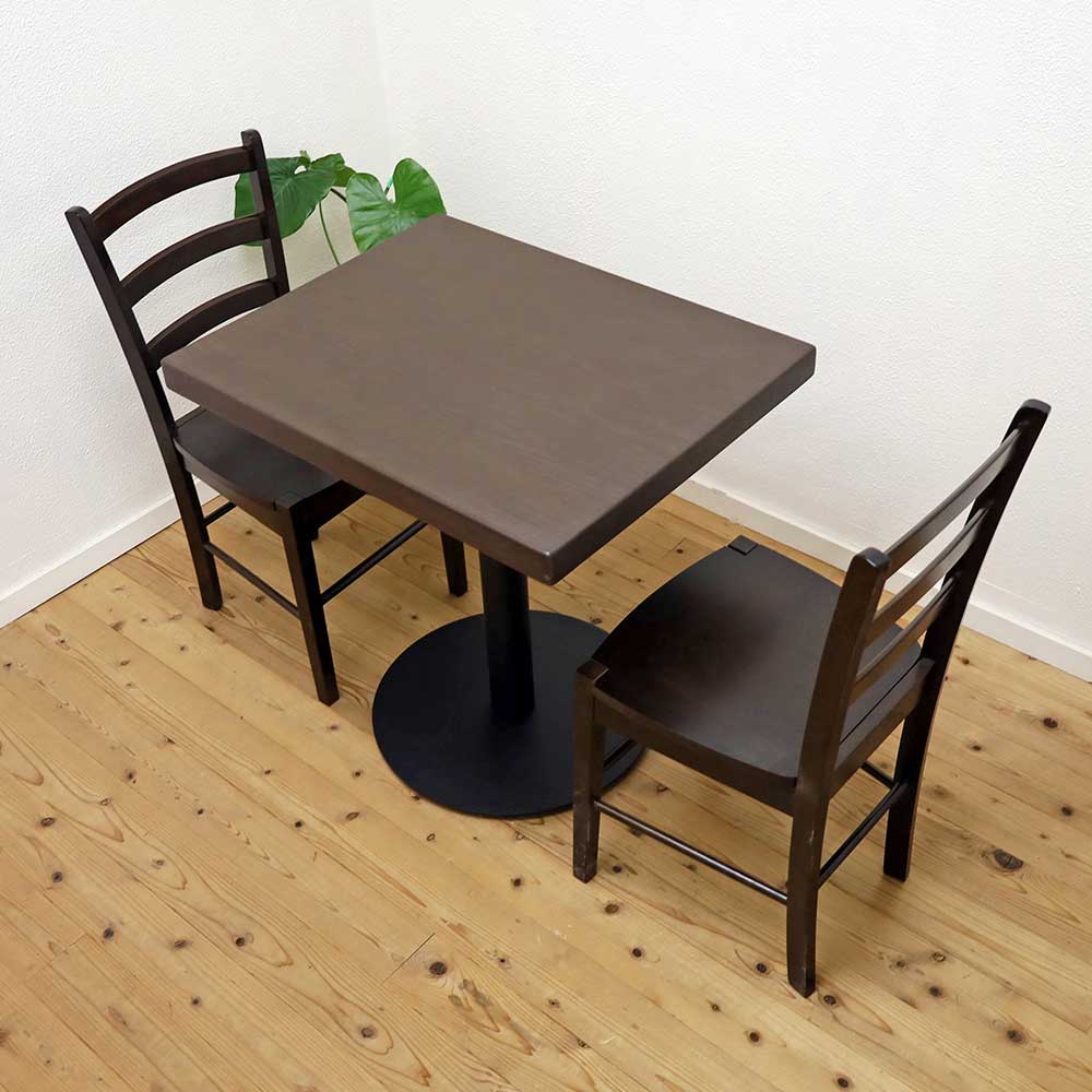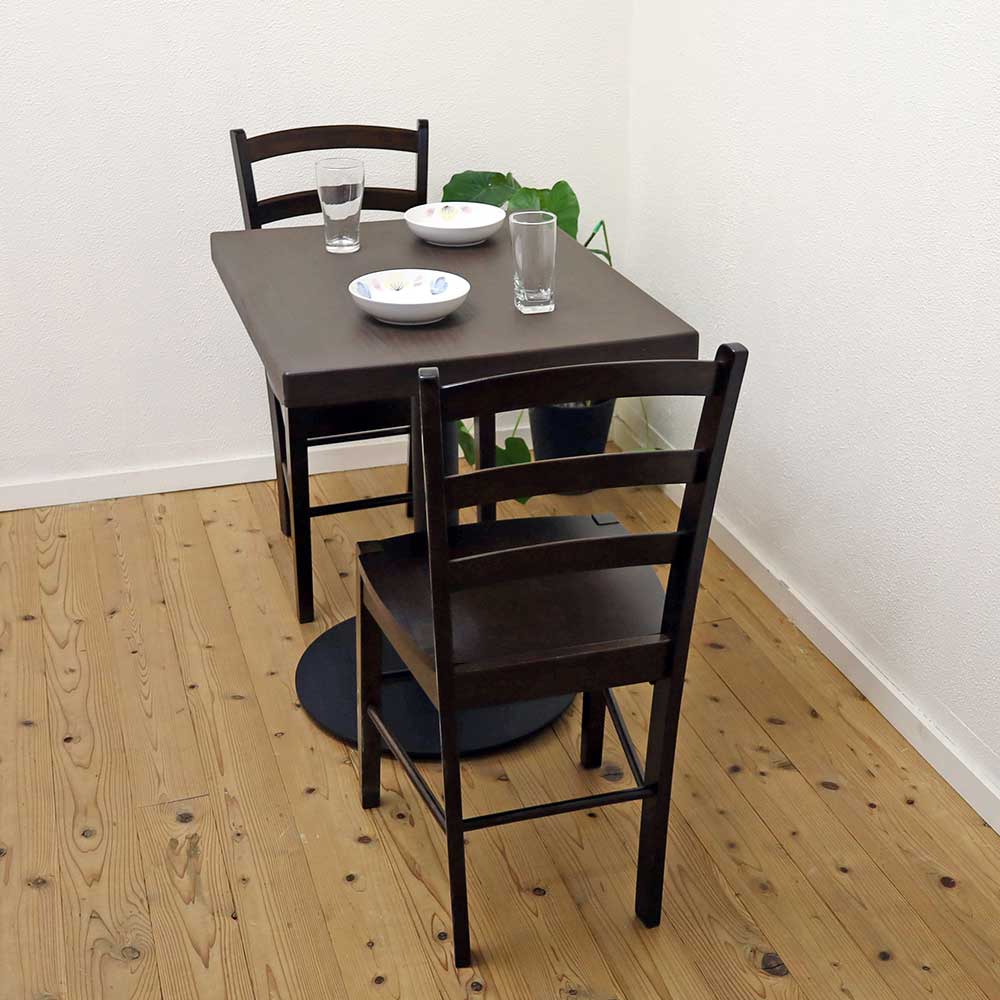 2人用飲食店パイン無垢材天板テーブルセット