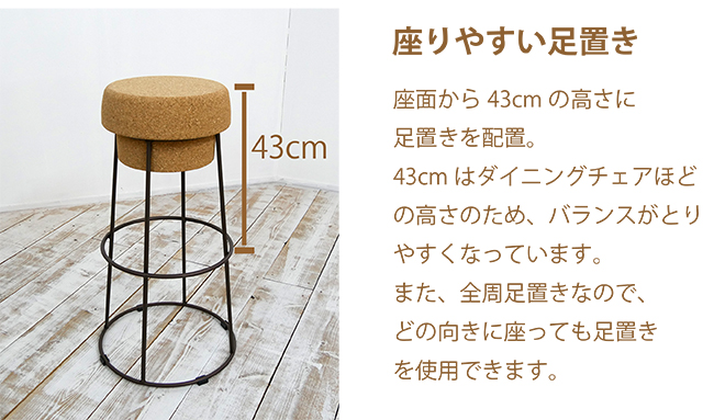 カウンターチェア カウンタースツール コルクスツール 76cm