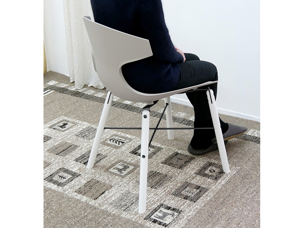 | 柔らかな座面は座ると緩くしなり、包み込むような座り心地を与えてくれます。 また脚はしっかりとして、デザインだけでなく実用品としての丈夫さも兼ね備えています。 |