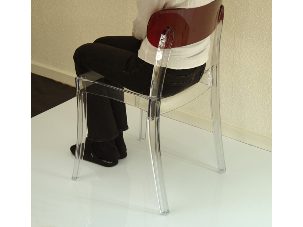 ■材質:ポリカーボネート■カラー:クリアレッド(座面は透明・背もたれのみ透過性のある赤色です)