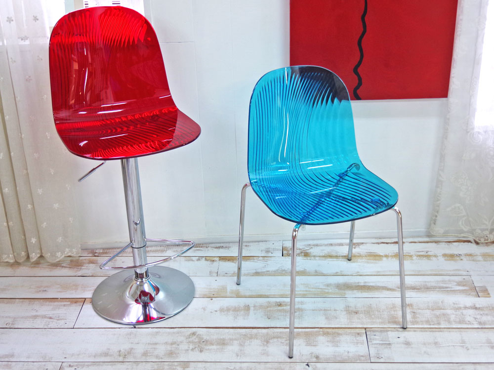 ■座面材質:AS樹脂フレーム:鉄製(クロムメッキ仕上げ)
