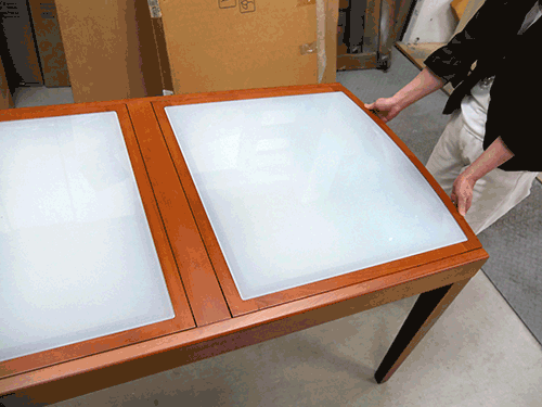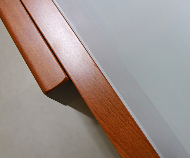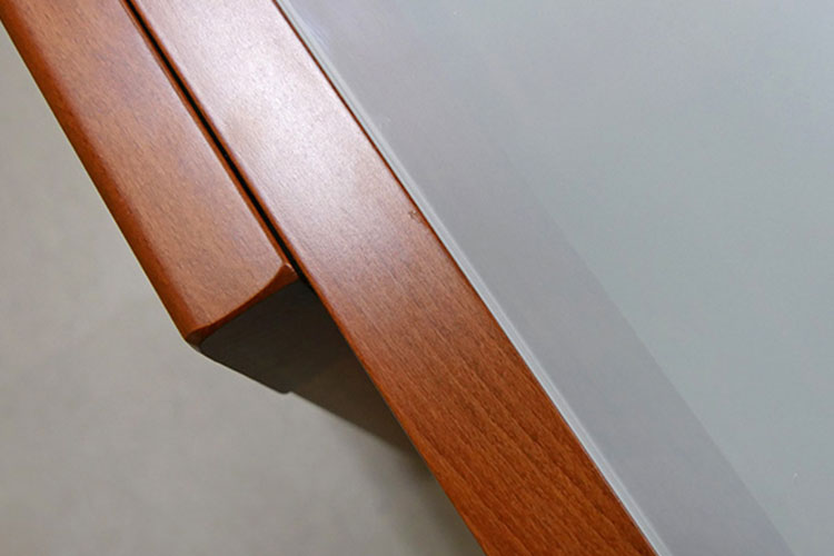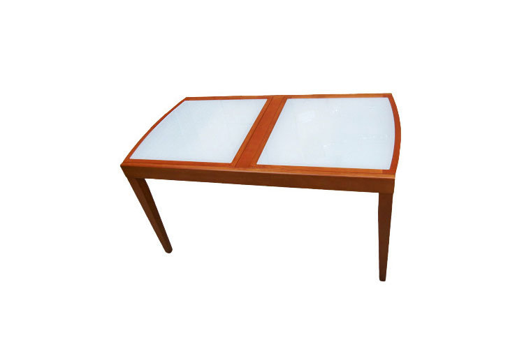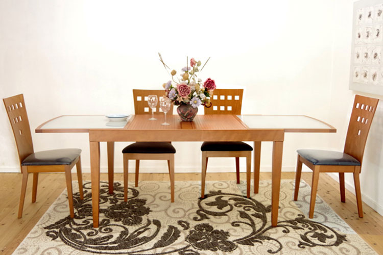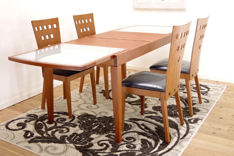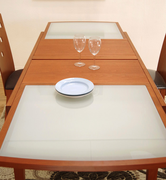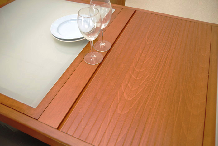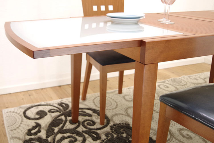 テーブルトップはすりガラスで、天板スライド式で簡単に伸長できます。