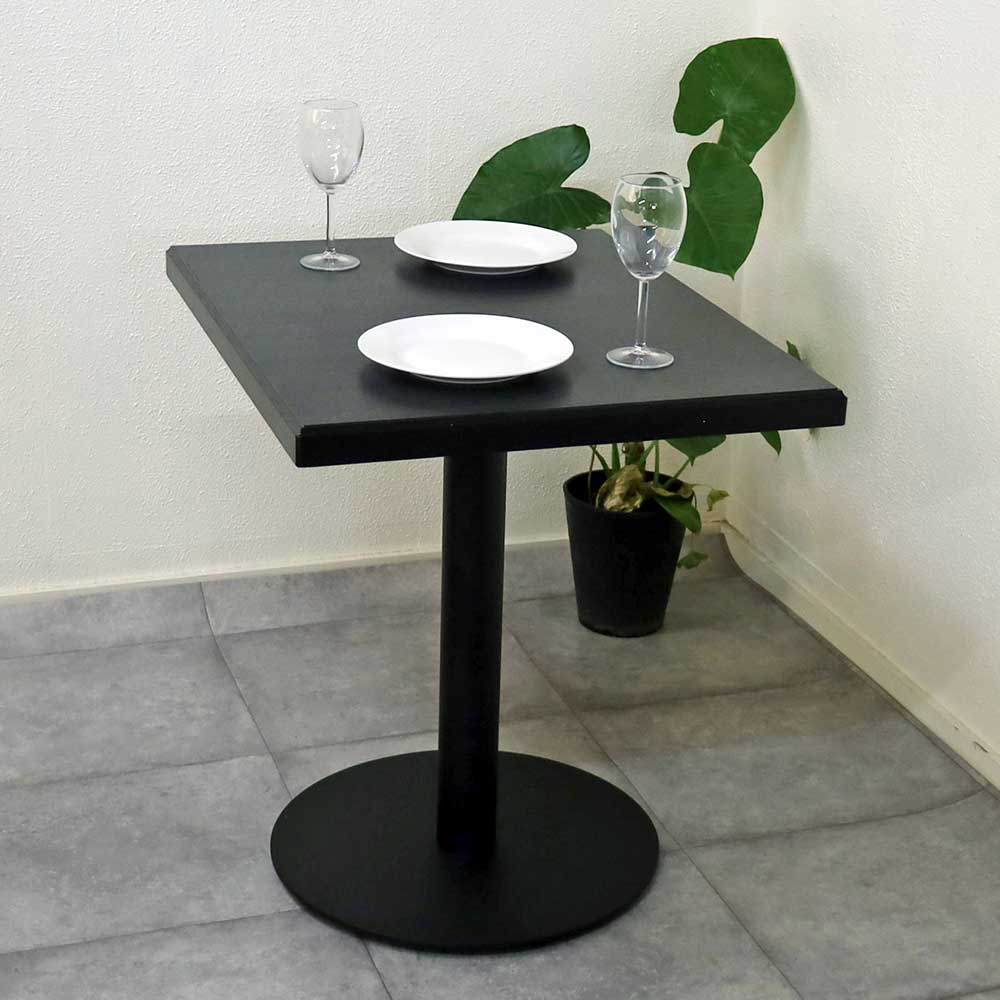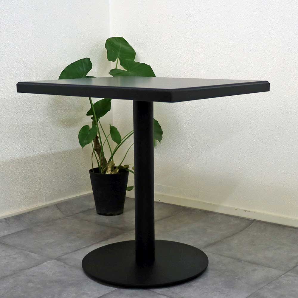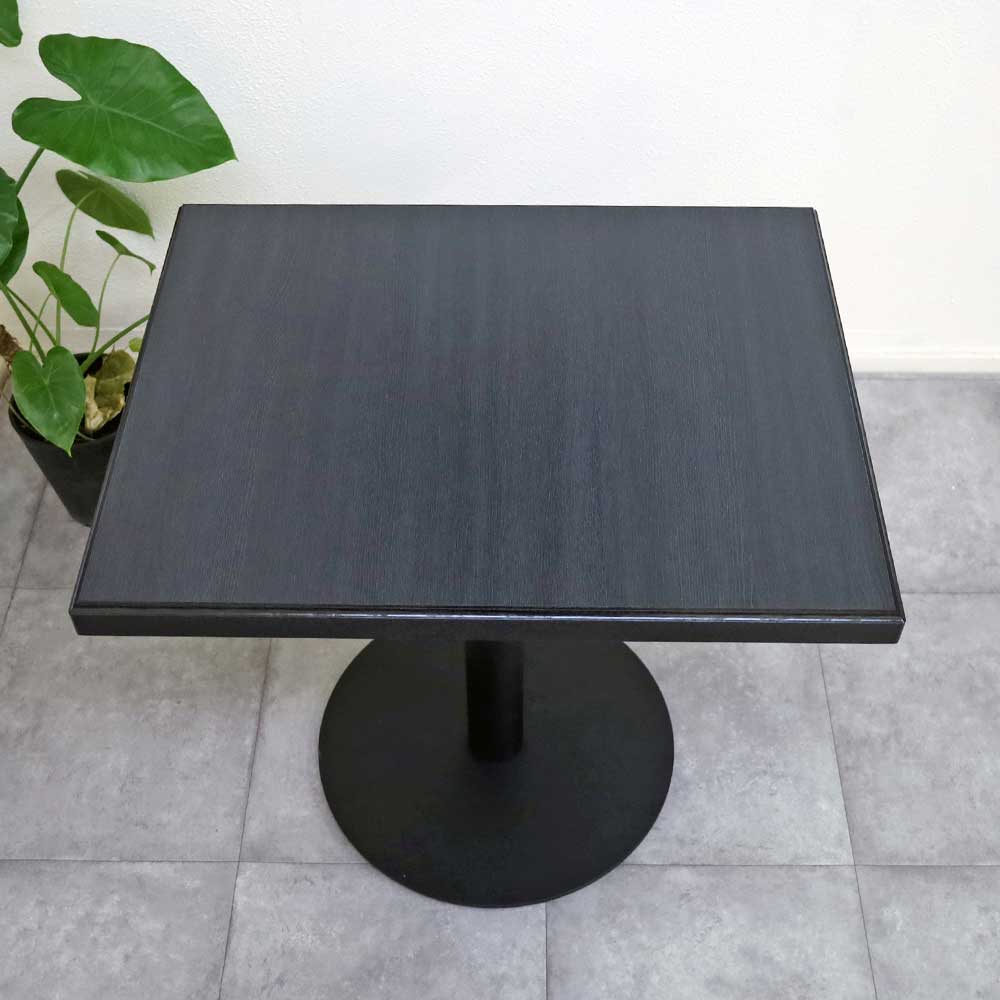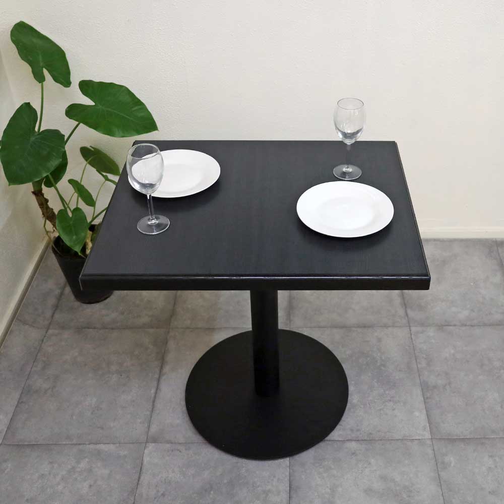 飲食店用テーブル,メラミン天板 1本脚 業務用テーブル単品 75cm-60cm角テーブル 黒色 ブラック色 二人用
