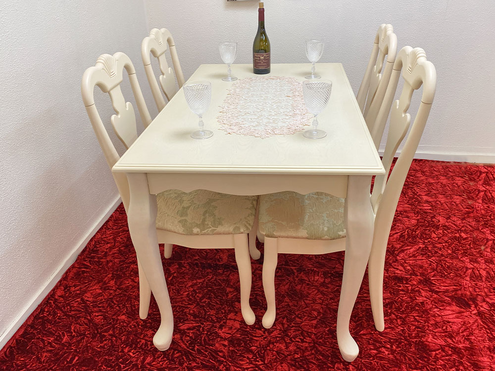 ■この商品は幅128cm4人掛け猫脚ダイニングテーブルとチェア4脚のセットです。ディスプレイ等は商品に含まれておりません。