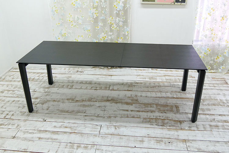落ち着きのあるウェンジ色とシンプルモダンのデザインが人気のイタリア製木製伸長式テーブルです♪