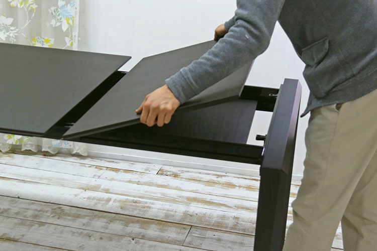 テーブル天板の大きさ変更は脚部をスライドさせて行います。